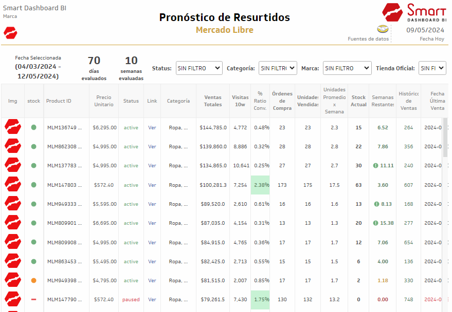 Smart Dashboard BI es el complemento perfecto para cualquier negocio entrante o establecido que quiera gestionar de manera eficiente el contenido relacionado a inventario, reputación y oportunidades de venta dentro de la plataforma de Mercado Libre.